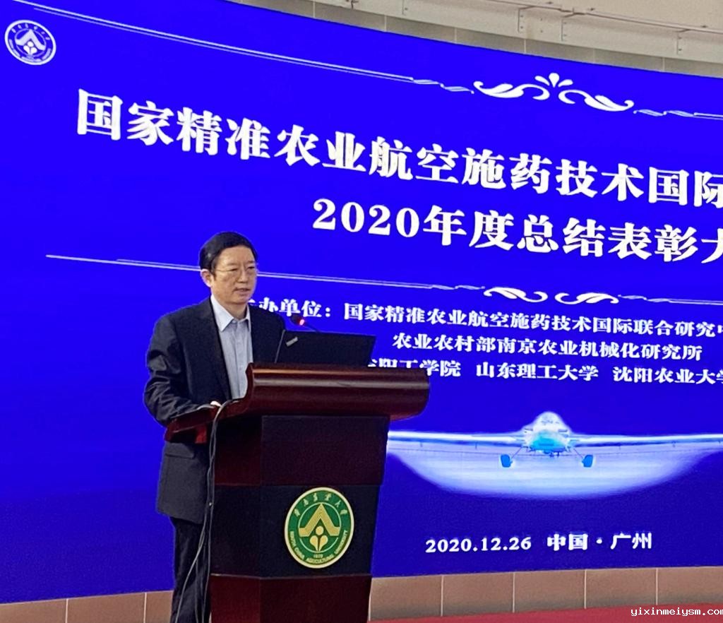 12月26日,国家精准农业航空施药技术国际联合研究中心2020年度总结暨表彰大会在华南农业大学召开。原农业部党组成员、人事劳动司司长毕美家,科技部国际合作司原副司长、中国国际科学技术合作协会会长姚为克,广东省农业农村厅二级巡视员丘小华,原欧洲科学、艺术与人文学院院士、国际精准农业航空学会主席、华南农大教授兰玉彬,我校校长景国勋、副校长万鹏杰等领导出席会议。来自山东理工大学大学、沈阳农业大学、农业部南京农机所、深圳无人机协会、大疆农业科技公司等单位的专家、学者和我校科研处、机械工程学院、生物与食品工程学院、化学与环境工程学院等相关部门负责人、教师代表参加会议。