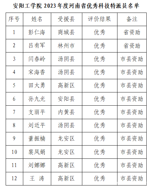 6月25日,中共河南省委组织部、河南省科学技术厅、河南省财政厅、河南省人力资源和社会保障厅、河南省农业农村厅联合发布了《关于公布2023年度河南省科技特派员绩效评价结果的通知》(豫科〔2024〕79号),我校在2023年度河南省科技特派员绩效评价中荣获佳绩,12名科技特派员绩效评价结果为“优秀”,53名科技特派员绩效评价结果为“良好”,我校被评为“优秀派出单位”。